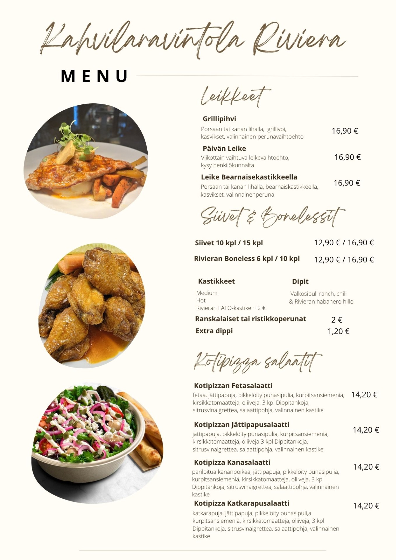 Meiltä löydät tutun ja rakastetun Kotipizzan lisäksi myös muutakin herkullista ruokaa joka päivä klo 20 saakka, ehdit hyvin poikkeamaan myös arki-iltoina. Tule rohkeasti maistamaan jotain uutta – saatat löytää uuden suosikkisi pizzan rinnalle. Ruokalistamme tarjoaa vaihtoehtoja niin nopeaan nälkään kuin kunnon aterialle: raikkaita salaatteja, maukkaita lämpimiä annoksia ja pientä purtavaa jaettavaksi. Käytämme aina mahdollisimman tuoreita raaka-aineita, jotta maku on parhaimmillaan.
